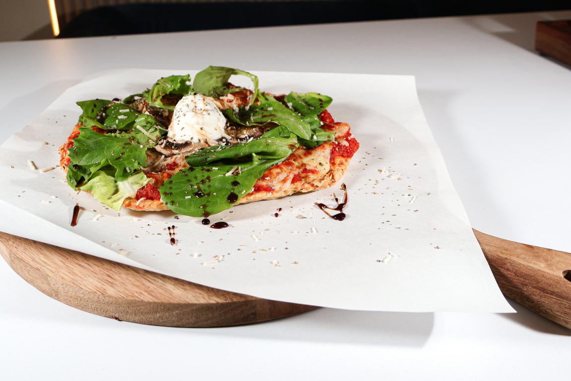 PIZZA DAIA FIT 🍕🌱 Masa a base de pollo y queso mozzarella bajo en grasa🍅